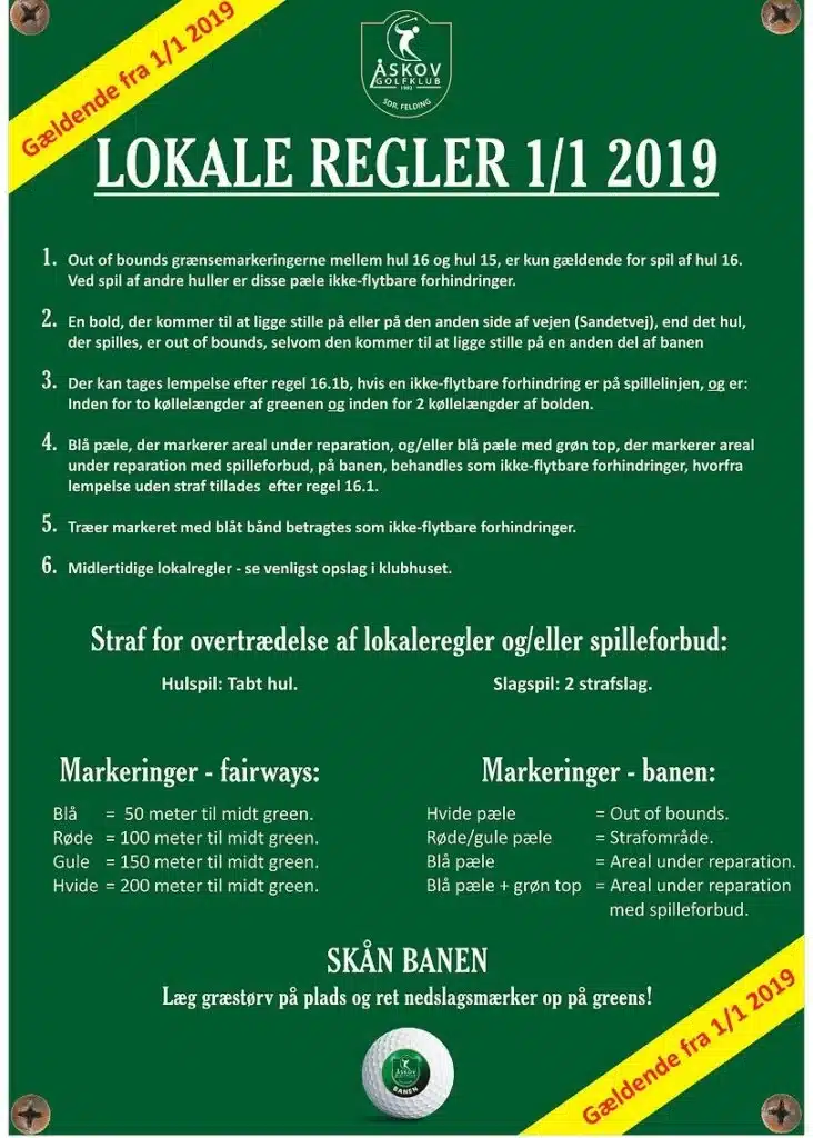 Er du i tvivl om golfreglerne, henviser Åskov Golfklub til Dansk Golf Unions hjemmeside. Her kan du se videoer, billeder og meget mere for at blive klogere på golfreglerne.